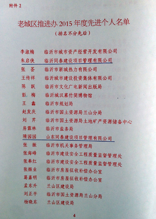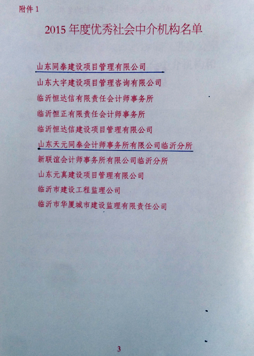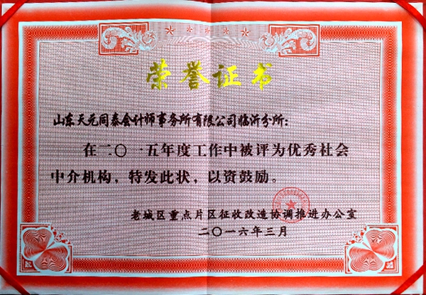 | 祝賀“同泰”獲臨沂市老城區(qū)推進(jìn)辦“2015年度優(yōu)秀中介機(jī)構(gòu)”! |